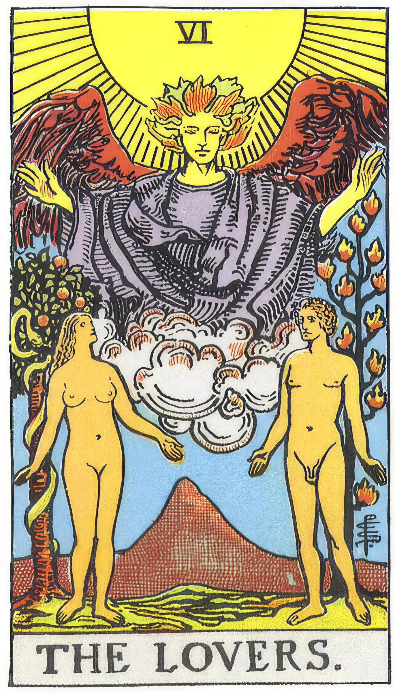 Обратите внимание на иерархию взглядов на карте: Мужчина смотрит на Женщину, а Женщина — на Ангела. Яблоко за спиной Евы показывает, что именно чувственная природа и земной опыт служат мостом к высшему знанию. Плод здесь выступает как аккумулятор реального опыта, без которого духовный рост остается лишь стерильной теорией.