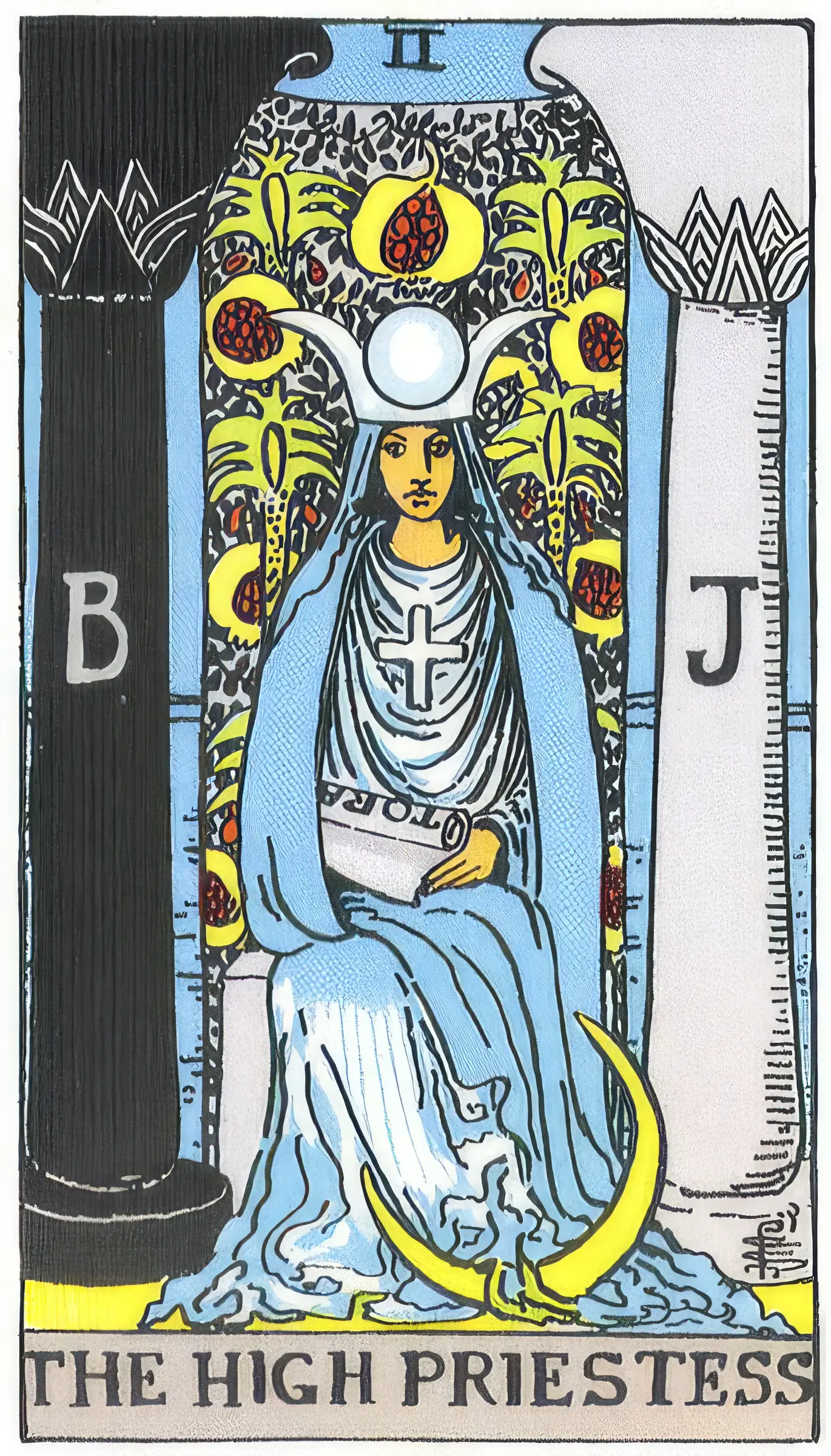 Гранат — это древний архив, в который упакованы смыслы нескольких цивилизаций. Артур Уэйт, будучи оккультистом высокого ранга, заложил в этот образ архитектурный код Храма Соломона. В Ветхом Завете описывается, что медные гранаты украшали капители храмовых колонн. Для посвященных это сигнал: перед вами не просто женщина на стуле, а порог священного пространства.